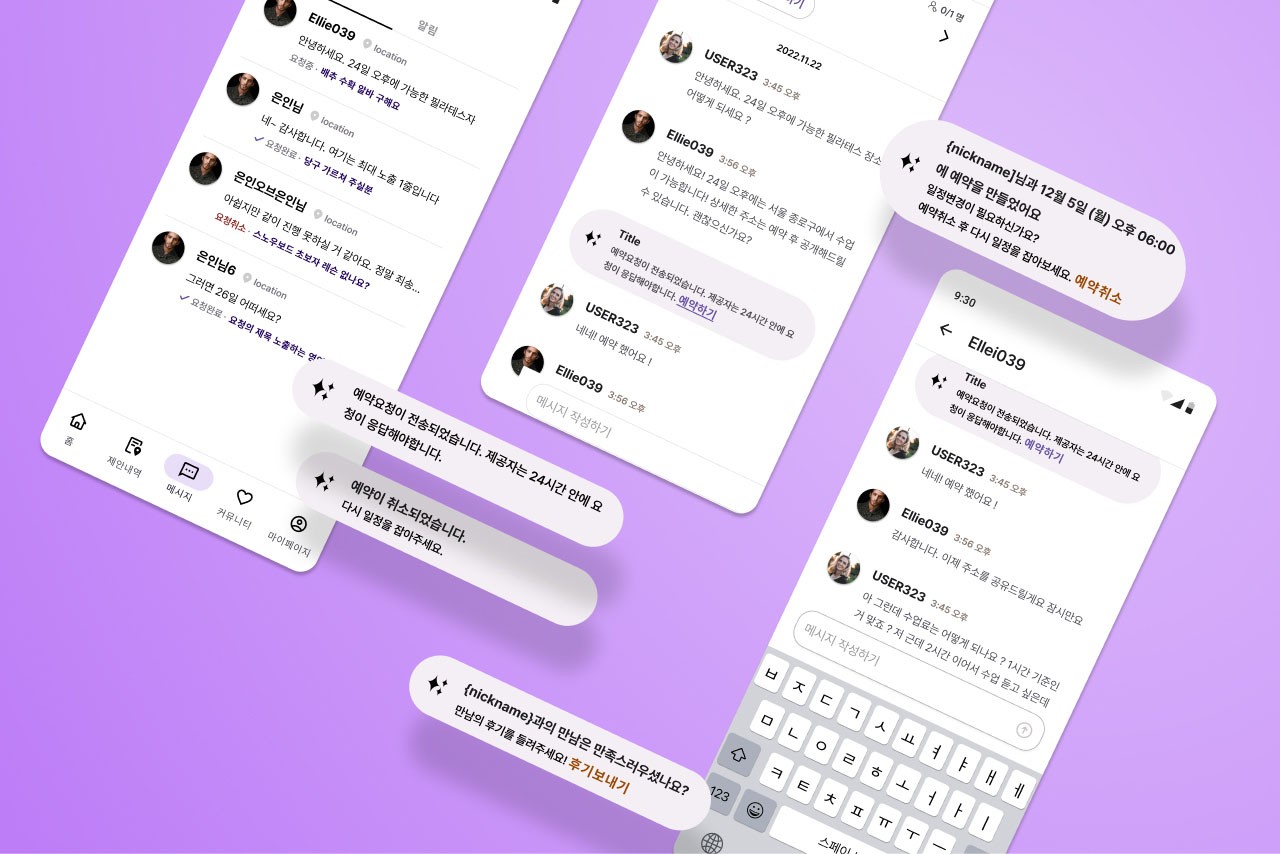 사용자는 파트너와 실시간으로 채팅을 통해 소통할 수 있습니다. 이를 통해 서비스의 세부사항을 조율하고, 추가 요청이나 질문을 처리할 수 있어 효율적인 소통이 가능합니다.